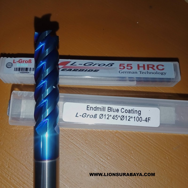 Endmill Blue Coating Diameter 12mm merk L-Grob adalah alat potong solid carbide berperforma tinggi yang dirancang untuk proses pemesinan presisi pada material keras. Produk ini populer di pasar industri Indonesia karena ketahanan panasnya yang unggul berkat lapisan Blue Nano Coating.