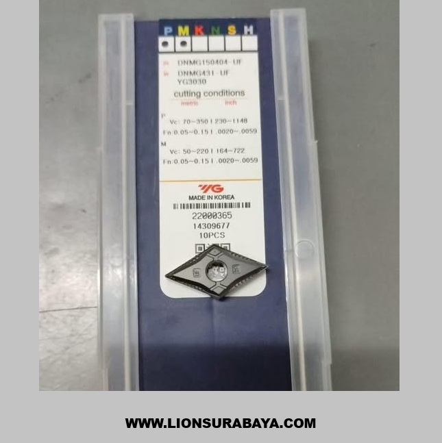 Insert bubut DNMG150404-UF YG3030 dari merek YG-1 Korea tersedia dari beberapa distributor resmi dan pengecer online di Indonesia, terutama melalui CV Lion Machine Solution.