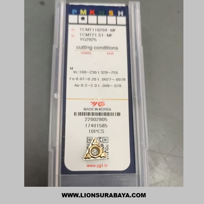 Insert bubut TCMT110204-MF dengan grade YG2025 dari merk YG-1 (Korea) adalah mata pahat sisipan yang dirancang khusus untuk proses pembubutan material stainless steel dengan performa tinggi.