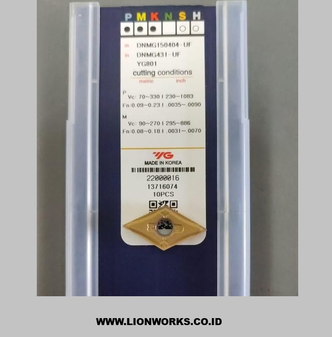 Insert bubut DNMG150404-UF YG801 adalah pahat sisipan (carbide insert) produksi YG-1 Korea yang dirancang khusus untuk proses finishing pada berbagai material logam.