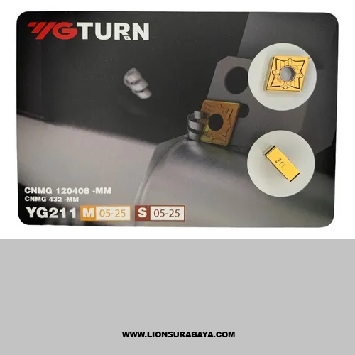 - YG-1 CNMG120408-MM YG211 adalah insert karbida performa tinggi yang dirancang khusus untuk pemesinan Stainless Steel dan paduan eksotis. Kode MM menunjukkan desain chipbreaker yang dioptimalkan untuk pemotongan sedang (medium cutting).