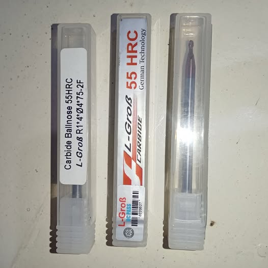 Jual Ballnose 2 flute diameter 2mm radius 1mm long 75mm HRC55 Merk l-grob