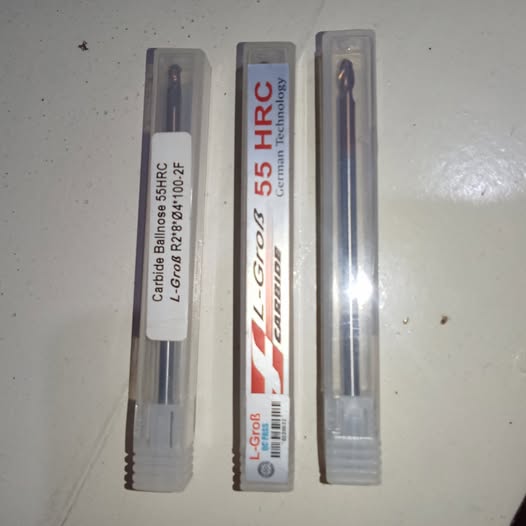 jual Ballnose 2flute diameter 4mm radius 2mm Long100mm HRC55 merk L-grob