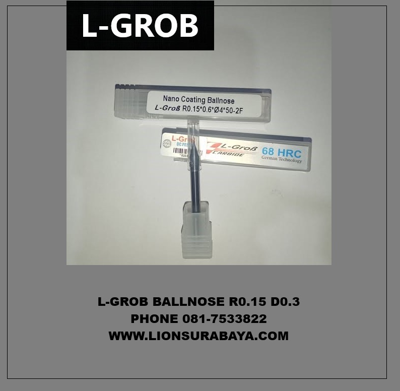 Produk BaruDetail Produk jual Ballnose Carbide 2 flute Diameter 0.3mm Radius 0.15mm HRC68 Merk L-Grob