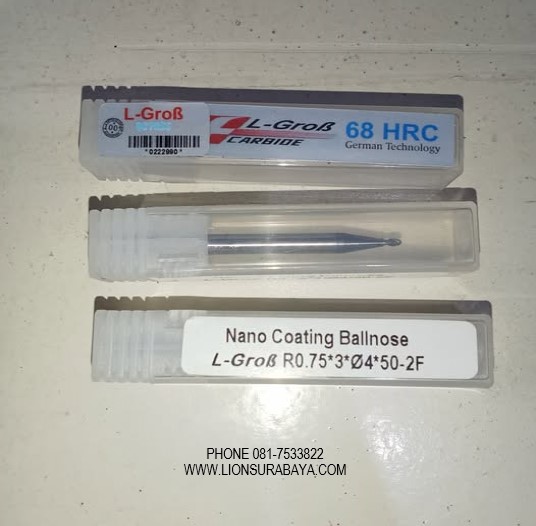 Ballnose hardened R0.75 (diameter 1,5 mm) merk L-Grob adalah alat potong (cutting tool) jenis endmill yang dirancang untuk pengerjaan material keras pada mesin CNC, seperti proses ukir 3D (engraving) atau milling baja.