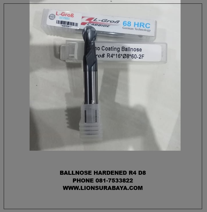 Jual ballnose hardened R4 D8 HRC68 merk L-grob