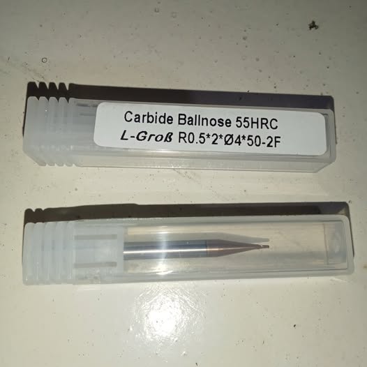 Produk yang Anda cari adalah end mill khusus (ballnose carbide) untuk pengerjaan material dengan tingkat kekerasan hingga 55 HRC, yang menunjukkan kemampuannya untuk memotong baja yang sudah dikeraskan.