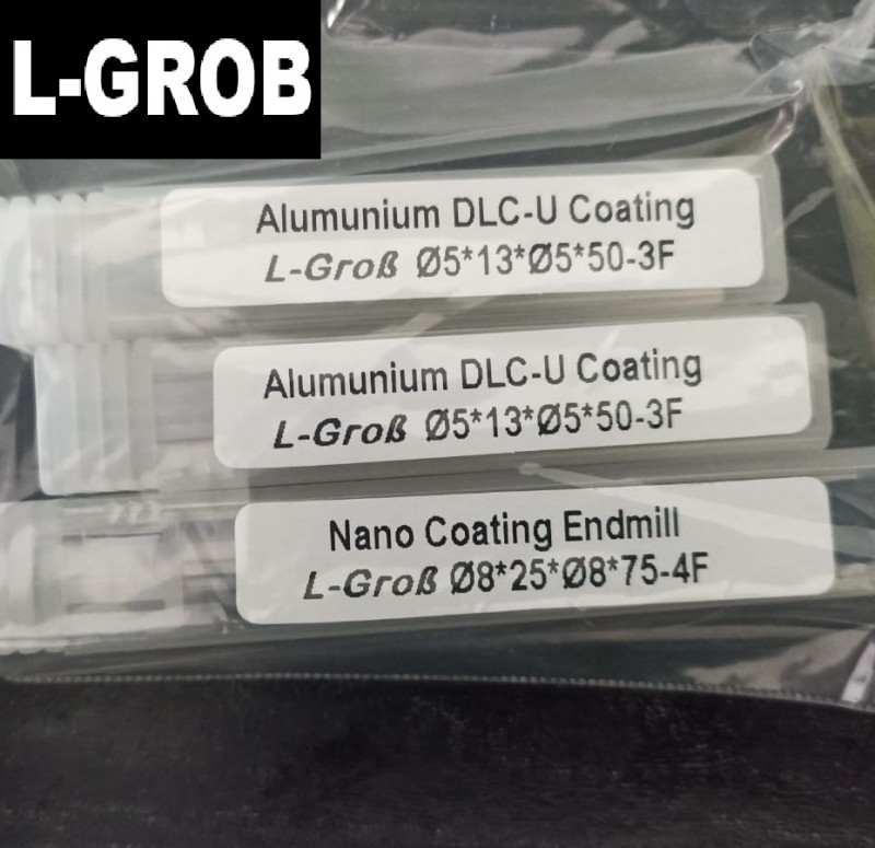 Distributor Endmill dengan diameter 5mm dan lapisan DLC (Diamond-Like Carbon)