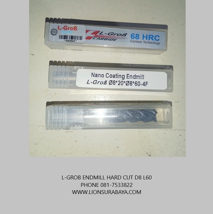 Jual endmill hard cut D8 L60 HRC68 merk L-grob