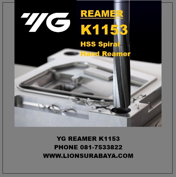 Produk BaruDetail Produk Jual Hand Reamer Spiral HSS Series K1153 Merk YG-1 KoreaDistributor resmi produk YG-1 di indonesia adalah CV. Lion Machine Solution.CV. Lion Machine Solution menyediakan berbagai produk cutting tools YG-1 seperti endmill, taps, drill, insert, dan lain-lain dengan jaminan garansi resmi YG-1 K1153 adalah reamer tangan HSS (High-Speed Steel) dengan alur spiral kiri (Left Hand Spiral Flutes) yang diproduksi oleh perusahaan alat potong Korea Selatan, YG-1. Alat ini dirancang khusus untuk proses "reaming", yaitu memperbesar dan menghaluskan lubang yang sudah dibor sebelumnya, dengan tujuan mencapai dimensi yang sangat presisi dan toleransi yang ketat, sering kali dalam satuan H7. Fitur dan Spesifikasi Utama: