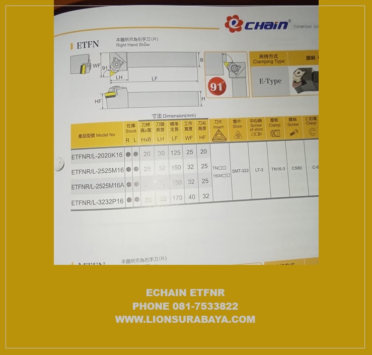 ![]() ![]() Jual Holder Bubut ETFNR ( TNMG1604 ) Merk Echain