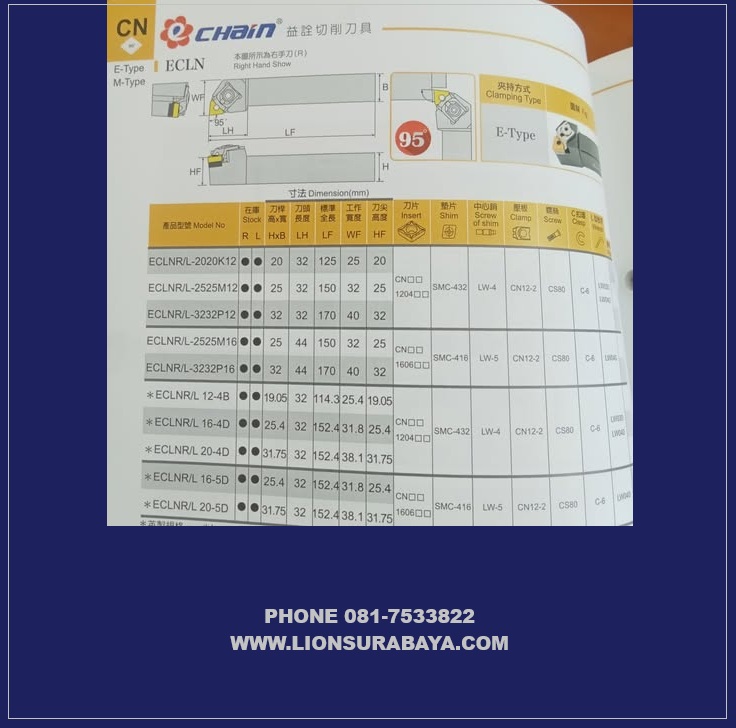 Jual Holder Bubut Luar ECLNR ( CNMG1204 ) Merk Echain