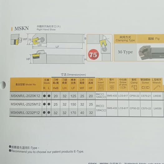 Holder bubut luar MSKNR (External Turning Holder) dari Echain adalah alat pemotong yang digunakan untuk operasi bubut di bagian luar benda kerja. Produk ini dikenal karena kualitasnya yang baik, diproduksi di Taiwan.