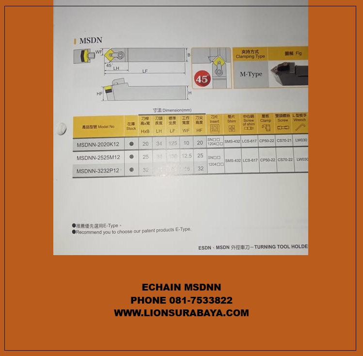 ![]() ![]() Jual Holder Bubut Netral MSDNN ( SNMG1204 ) Merk Echain