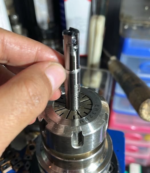 - Double-Sided Insert: Menggunakan insert LNMU0202 yang memiliki dua sisi, memberikan total 4 sudut potong sehingga lebih ekonomis.