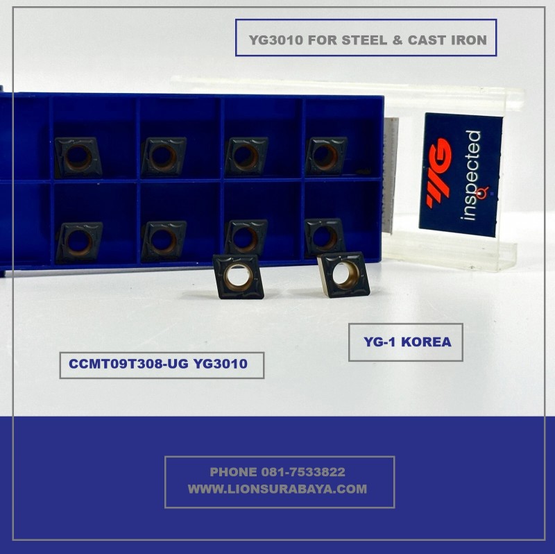- Lion Machine Solution: Menjual YG-1 CCMT09T308-UG New Carbide Inserts Grade YG3010 baik secara langsung maupun melalui platform seperti Indotrading.com dan Lionworks.co.id. Mereka adalah distributor resmi produk YG-1 di Indonesia.