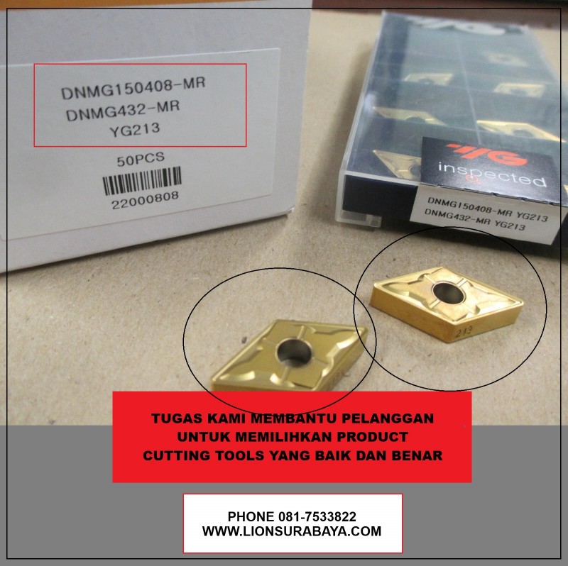 Insert bubut DNMG150408-MR YG213 Merk YG-1 tersedia melalui distributor resmi dan toko peralatan teknik di Indonesia. CV Lion Machine Solution di Surabaya adalah salah satu distributor resmi yang dapat menyediakan produk asli YG-1