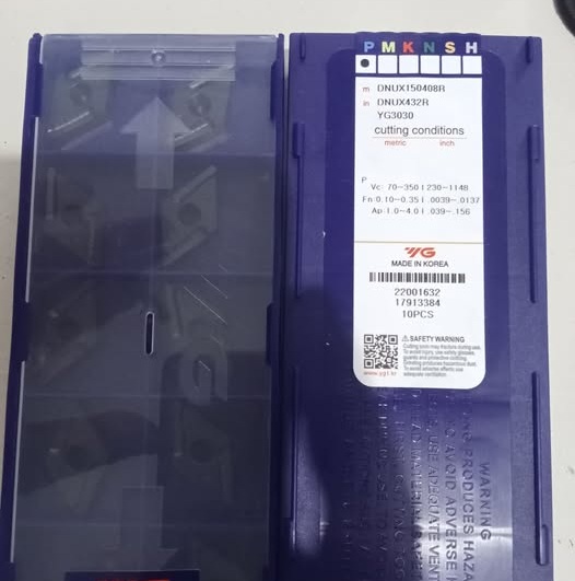 Insert Bubut DNUX 150408R YG3030 adalah mata pisau potong (pahat) karbida produksi YG-1 Korea yang dirancang untuk proses pembubutan berat (heavy duty) pada material baja (steel) dan baja tahan karat (stainless steel).