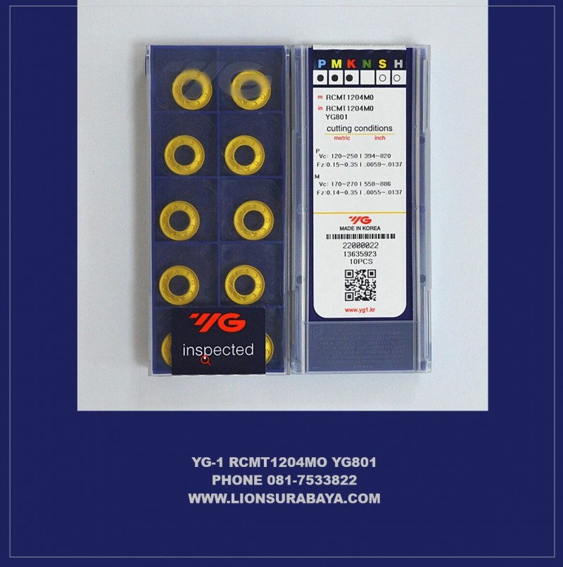 Distributor / Agen / Supplier RCMT1204MO YG801RCMT1204MO YG801 adalah kode spesifikasi untuk insert bubut/milling (sisipan potong) berbahan karbida dari produsen asal Korea Selatan, YG-1. Berikut adalah rincian teknis dari kode tersebut: