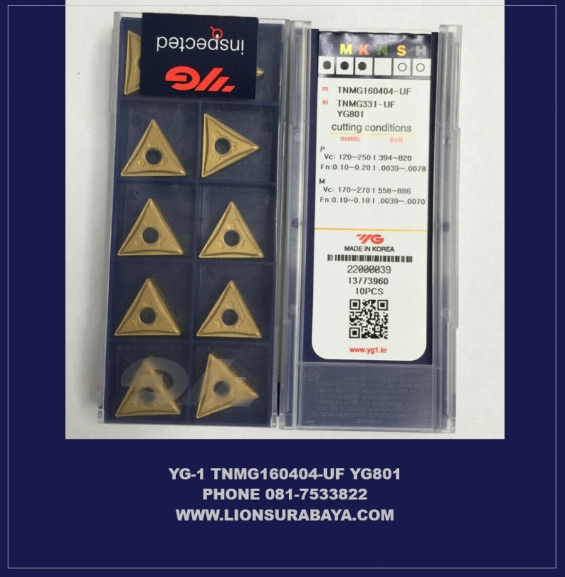 Produk BaruDetail Produk Jual Insert Bubut TNMG160404-UF YG801 Merk YG-1 Korea