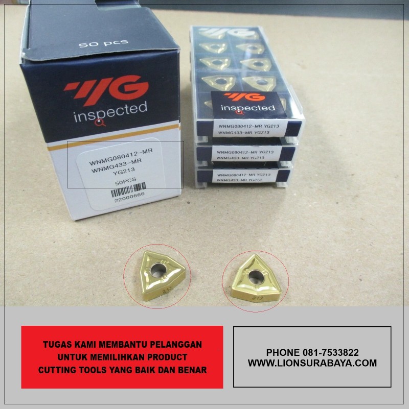 Insert bubut WNMG080412-MR YG213 Merk YG-1 tersedia melalui distributor resmi YG-1 di Indonesia CV LION MACHINE SOLUTION , serta dapat ditemukan di berbagai toko peralatan teknik daring