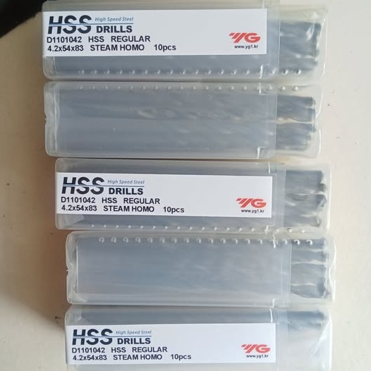 Mata bor YG-1 berdiameter 4.2mm tersedia dalam berbagai jenis bahan dan lapisan, seperti HSS dan karbida dengan lapisan TiN atau TiAlN, yang cocok untuk mengebor besi, baja, dan stainless steel.