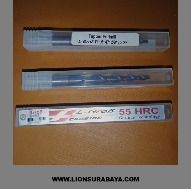 Produk L-Grob Tapered Ballnose R1.5X47XD8X85-2F adalah perkakas potong (cutting tool) jenis solid carbide yang dirancang khusus untuk mesin CNC, terutama untuk pekerjaan pengukiran 3D (3D carving) dan pemotongan material keras.