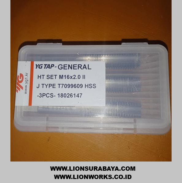 YG-1 hand tap M16x2 (T7099609) adalah bagian dari seri T7099, yang merupakan set tap tangan HSS (High-Speed Steel) tipe J ekonomis yang dirancang untuk membuat ulir internal secara manual.